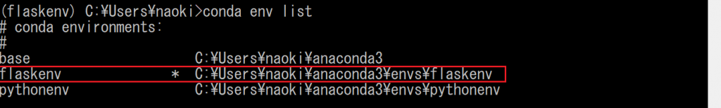 実行すると、ターミナルの左端が(flaskenv)になる。