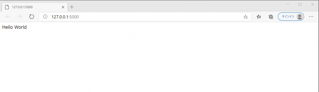 - Flaskのアプリケーションがブラウザの画面上に表示される(http://127.0.0.1:5000で開く)