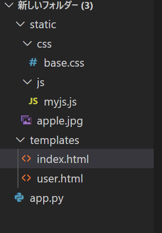 <img src="{{ url_for('static', filename='apple.jpg') }}"> <!-- staticフォルダ内のapple.jpgを表示する -->